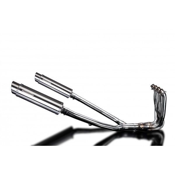 De Round demper van Delkevic is gemaakt van RVS. De lengte van de demper is 350mm. De uitlaatbochten zijn gemaakt van RVS.