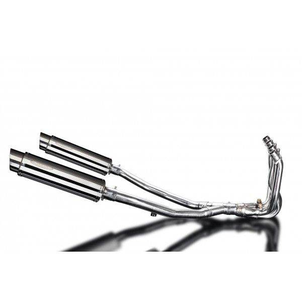 De Round demper van Delkevic is gemaakt van RVS. De lengte van de demper is 350mm. De uitlaatbochten zijn gemaakt van RVS.