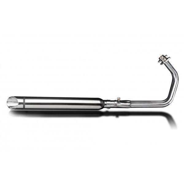De Round Slash Cut demper van Delkevic is gemaakt van RVS. De lengte van de demper is 550mm. De uitlaatbochten zijn gemaakt van RVS.