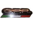 GPR sticker zwart hittebestendig logo 125x40 mm, materiaal aluminium, ca 124x40mm, licht gebogen.
