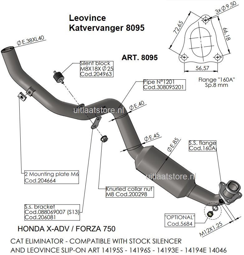 HONDA X-ADV (compatibel met de Leovince uitlaat en originele uitlaten) 4-takt 750cc modeljaren 2017-2022