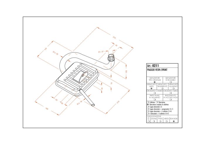 Leovince 0211 Volledig uitlaatsysteem SITO PIAGGIO VESPA SPRINT type Volledig systeem