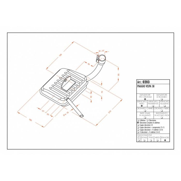 Leovince 0203 Volledig uitlaatsysteem SITO PIAGGIO VESPA '58 type Volledig systeem