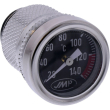 JMP-olietemperatuurmeter met analoog display. Vooral op hete dagen in de zomer of in het buitenland kan je wel eens twijfelen over de temperatuur van je motor. Op deze meter kan je eenvoudig aflezen of de temperatuur normaal is, zoals bij dagelijks gebruik, of veel hoger. Als je olietemperatuurmeter onder normale omstandigheden 80 graden aanwijst, en op een hete dag staat hij op 120 graden, dan weet je dat je beter even kunt stoppen. Teflon-gemonteerde versie in een nieuw ontwerp. De originele olievulplug moet worden vervangen door deze olietemperatuurmeter. De temperatuur van de rondspattende olie die op de meetsonde terecht komt wordt gemeten. De meetsonde hangt bij de meeste motoren meestal niet in het oliebad.