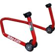 Artikelnummer 722.89.50+722.80.59 - Sterke en stabiele paddockstand BikeLift RS17 met dubbele rubberen wielen en L-adapters. De buis is gemaakt uit één stuk. Optilhoogte 34 cm.