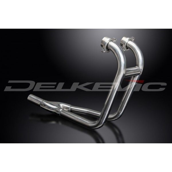 Delkevic RVS bochtenset Suzuki GS500E/F (1989-2009) uitlaatbochten. Het uiteinde van deze bochtenset heeft een diameter van 45mm en hierop past de standaard uitlaat en elke aftermarket uitlaat die voor de standaard uitlaatbochten gemaakt is.
