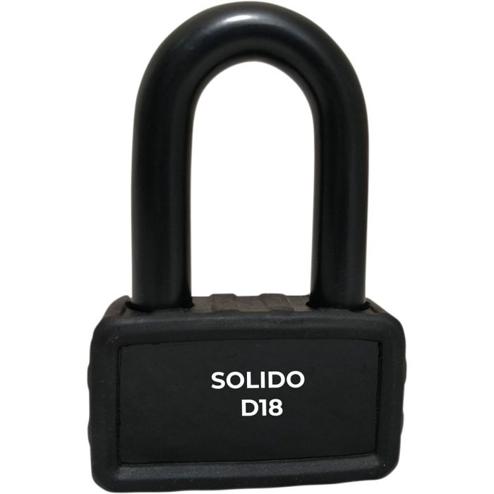 Schijfremslot motor Luma Solido D18 - SOLIDO DISC18 SRA ART4 - Goedkoopste ART4 motorslot maar wel met een maar liefst 18mm dikke beugel. Te gebruiken als kettingslot en schijfremslot. Het past niet door de gaten in je schijf omdat de beugel te dik is, maar het past wel door de openingen in je remschijf als je die hebt. Solido D18 Disk Lock, gehard staal, sleutel tweezijdig te gebruiken, LOCKS MC/DT - 44/18, klasse: ART4 en S.R.A. (Securité et Réparation Automobiles France).