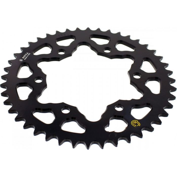 SITTA Racing aluminium tandwielen Made in Italy. De kwaliteit van de SITTA tandwielen spreekt voor zich, ze worden gebruikt in Moto 2, Moto 3, Superbike, Superstock, Supersport, CIV (Italië) en CEV (Spanje). Door het gebruik in de high-end sector kunnen nauwkeurige ervaringswaarden worden verzameld en kan het ontwerp van de tandwielen maximaal worden aangepast.