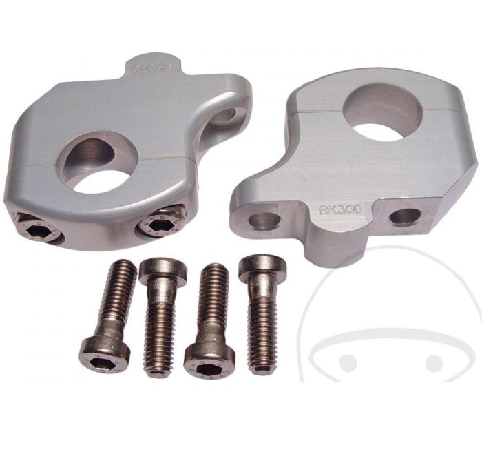 22,2 mm RiseUp stuurklemmen van LSL - verhoogt het standaard stuur - gemaakt van gefreesd aluminium - voor alle 22,2 mm sturen met een pitch van 38 mm - Offset: 16 mm naar achteren en 30 mm naar boven - zilverkleurig