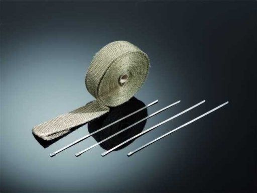 Titaniumkleurige hittebestendige tape uitlaatband uitlaatwrap voor uitlaten en uitlaatbochten. Lengte 15 meter, incl 4 rvs klembanden. Breedte 50 mm. Verbruik: 8 tot 10 meter voor de 4 bochten van een vi... Lees meer