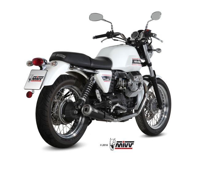 MIVV Slip-on 2 dempers GHIBLI RVS met zwarte keramische coating M.010.LGB voor de MOTO GUZZI V7 CLASSIC / SPECIAL 2008 > 2016.