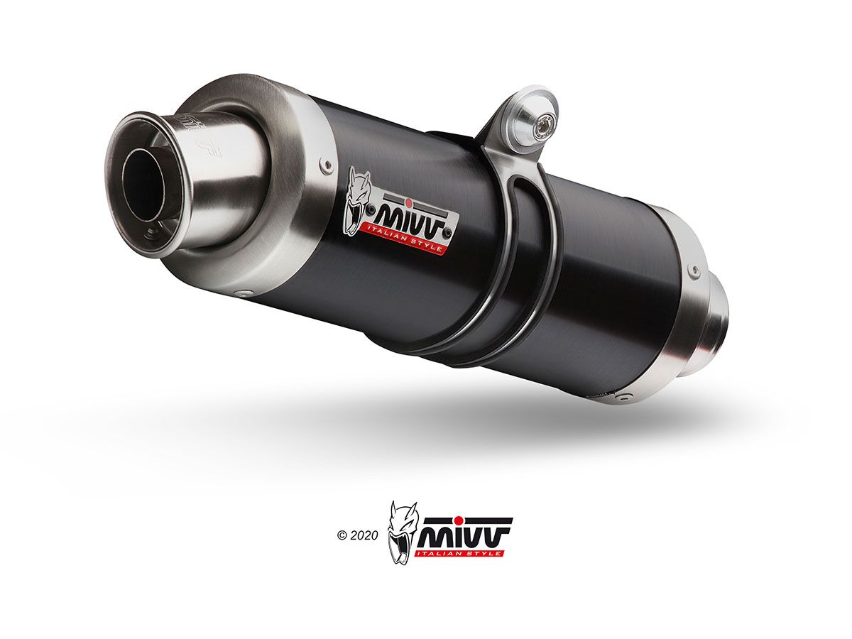 Beschrijving: De Mivv GP BLACK is een compacte uitlaat met een echte race-look.