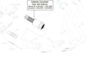 Dat is per motor verschillend. Soms zit de katalysator onder het motorblok, in een soort "voordemper". Ook zit de katalysator soms in de linkpijp richting de uitlaat van je motor.