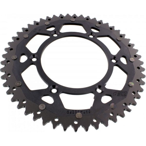 De ZF dubbele tandwielen behoren tot de hoogste kwaliteit en technisch meest geavanceerde tandwielen ter wereld. Het geheim is gebaseerd op de combinatie van de duurzaamheid van staal en de lichtheid van duraluminium. Deze aluminiumlegering wordt gekenmerkt door zijn enorme sterkte en dichtheid en door zijn lage gewicht. De treksterkte is ongeveer 11 keer die van puur aluminium. Bij uitharding wordt duraluminium bijna net zo sterk als staal. Dienovereenkomstig zijn een lager gewicht en een grotere duurzaamheid geïmplementeerd. Frezen in de tandbasis van het tandwiel garanderen een optimale zelfreiniging. Deze uitsparingen zorgen ervoor dat het vuil zich niet tussen de tanden kan nestelen en dat de ketting en het tandwiel minder snel slijten. De duurzaamheid van de ZF-Dual tandwielen is ongeveer drie keer langer dan die van puur aluminium tandwielen en zijn 50% lichter dan stalen tandwielen. Uitermate geschikt voor op de weg en offroad.