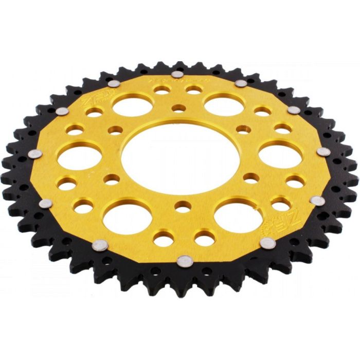 De ZF dubbele tandwielen behoren tot de hoogste kwaliteit en technisch meest geavanceerde tandwielen ter wereld. Het geheim is gebaseerd op de combinatie van de duurzaamheid van staal en de lichtheid van duraluminium. Deze aluminiumlegering wordt gekenmerkt door zijn enorme sterkte en dichtheid en door zijn lage gewicht. De treksterkte is ongeveer 11 keer die van puur aluminium. Bij uitharding wordt duraluminium bijna net zo sterk als staal. Dienovereenkomstig zijn een lager gewicht en een grotere duurzaamheid geïmplementeerd. Frezen in de tandbasis van het tandwiel garanderen een optimale zelfreiniging. Deze uitsparingen zorgen ervoor dat het vuil zich niet tussen de tanden kan nestelen en dat de ketting en het tandwiel minder snel slijten. De duurzaamheid van de ZF-Dual tandwielen is ongeveer drie keer langer dan die van puur aluminium tandwielen en zijn 50% lichter dan stalen tandwielen. Uitermate geschikt voor op de weg en offroad.